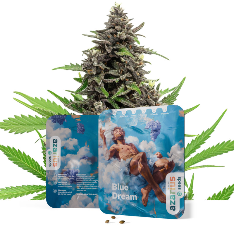 Provate il meglio della Haze e dell'iconica Blueberry di DJ Short con la fruttata e produttiva Blue Dream di Azarius Seeds.
